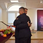 Po przeprowadzeniu zmiany służby w Jednostce Ratowniczo-Gaśniczej i pożegnaniu w strażackim wydaniu, funkcjonariusze i pracownicy naszej komendy spotkali się na uroczystej zbiórce, aby w obecności małżonki podziękować st. ogn. Arturowi Wentczukowi za lata współpracy. Nie zabrakło miłych wspomnień, pełnych serdeczności uścisków dłoni i ciepłych słów, które dowiodły, że nasze szeregi opuszcza bardzo życzliwy, koleżeński i oddany służbie funkcjonariusz.