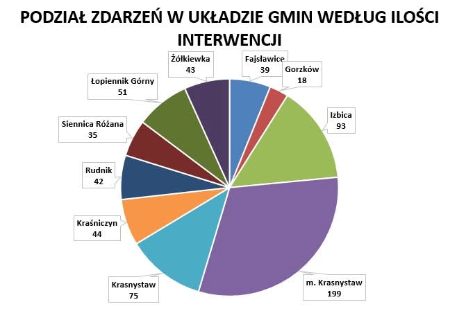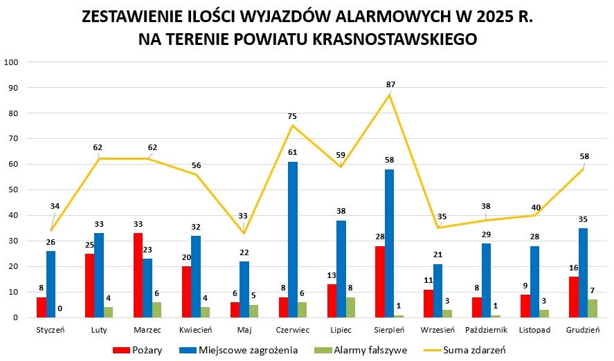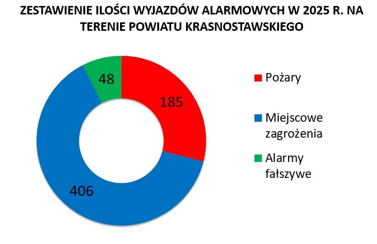 W 2025 roku Komenda Powiatowa Państwowej Straży Pożarnej w Krasnymstawie odnotowała 639 zdarzeń, czyli o 39 interwencji mniej w stosunku do roku 2024.